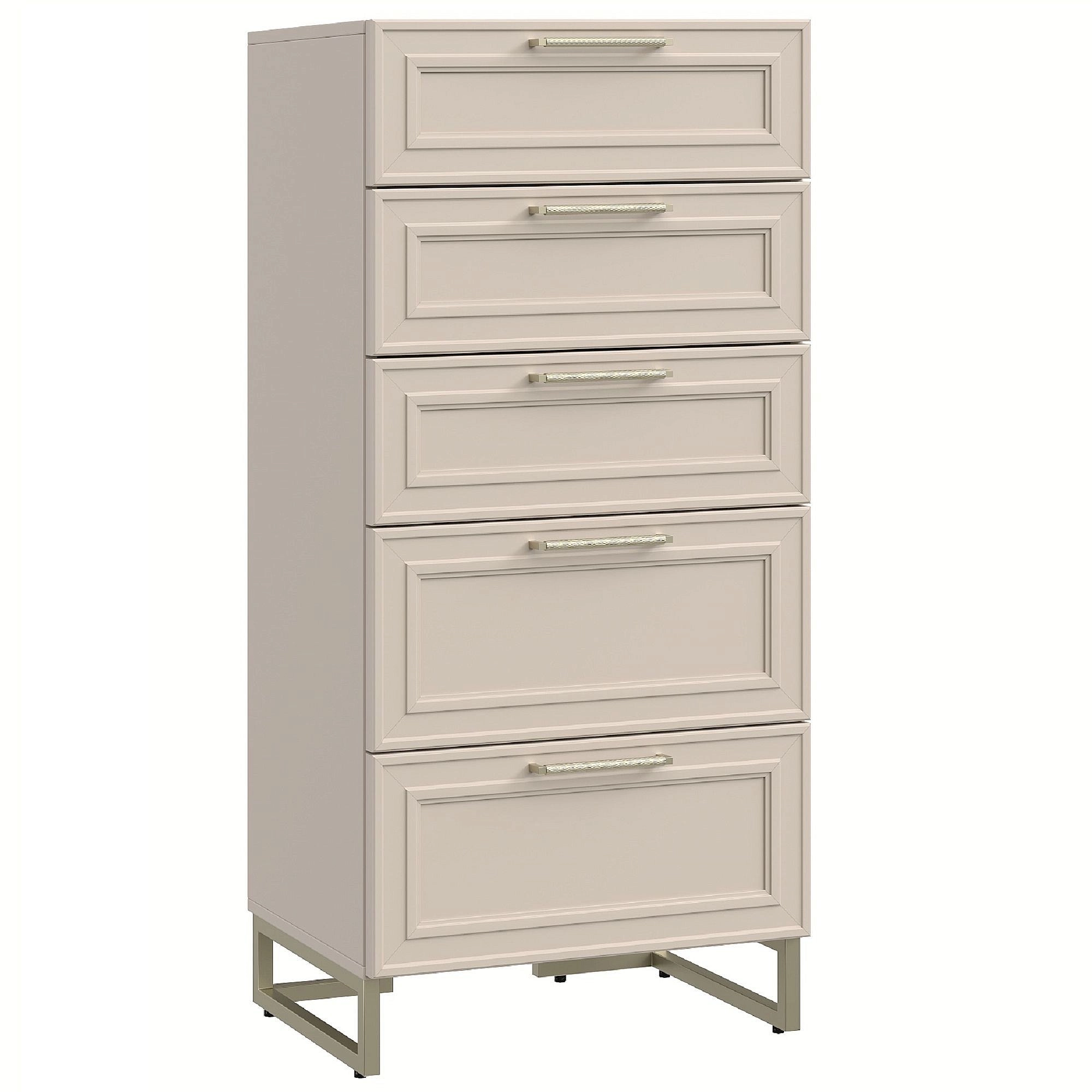 Функциональный комод Montreal с пятью ящиками — незаменимая система хранения в спальне или гостиной. Утонченный и сдержанный дизайн подходит для пространств в классическом или неоклассическом стиле. Высокие опоры изделия оптимальны для использования робота пылесоса.