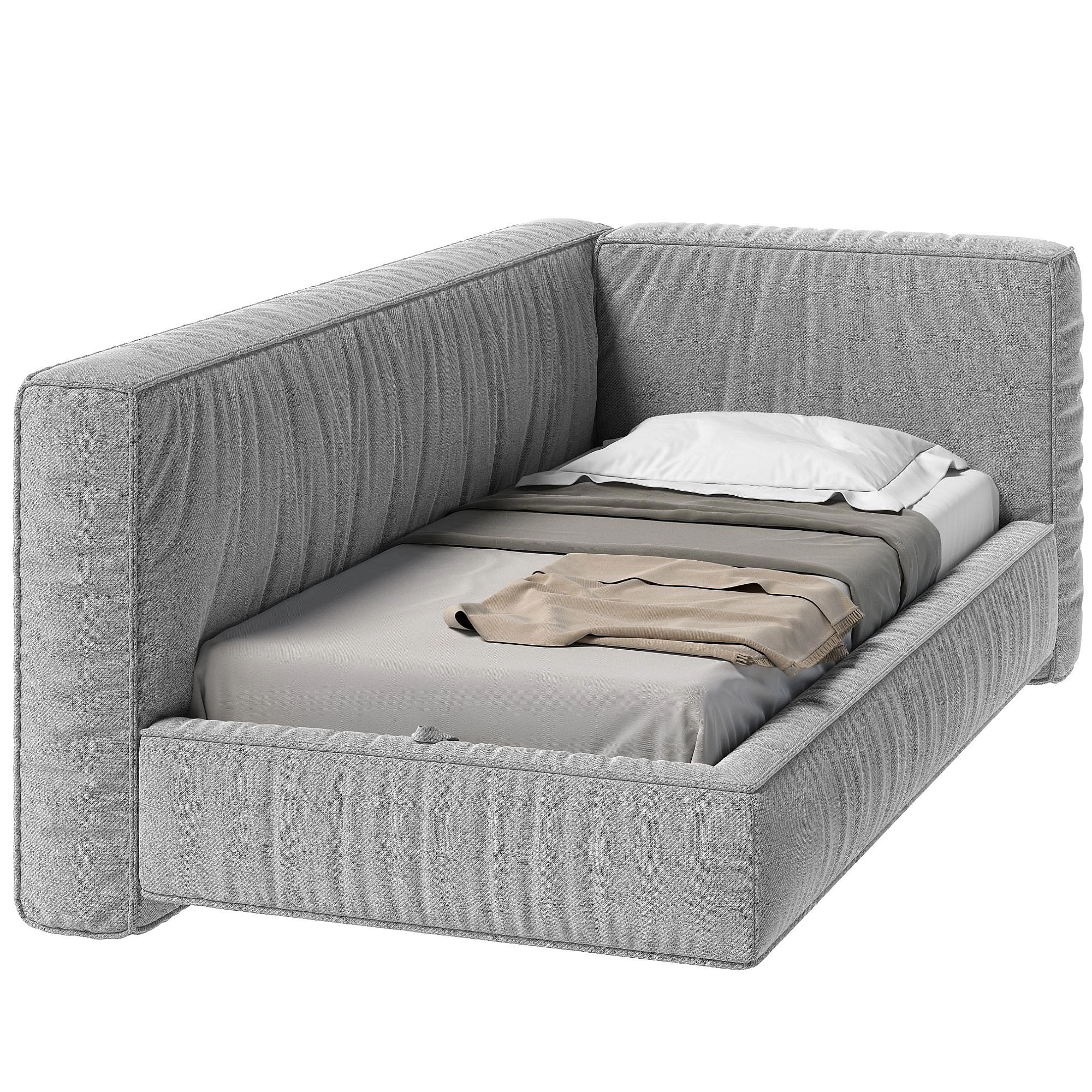 Конструкция с мягкими объемными бортами легко интегрируется в угловую часть небольшого пространства, задействуя всю полезную площадь. А разместив кровать в центре большой комнаты, вы сделайте ее настоящим арт-объектом в яркой и необычной интерьерной композиции. Мягкие объемные изголовья и борта с декоративными складками создают ощущение погружения в мягкость, расслабляя после тяжелого дня. Ортопедическое основание на металлическом каркасе с ламелями из натурального дерева обеспечит надежную поддержку для качественного и здорового сна. А уборка будет простой и быстрой – царги находятся на высоте 15 см от пола.