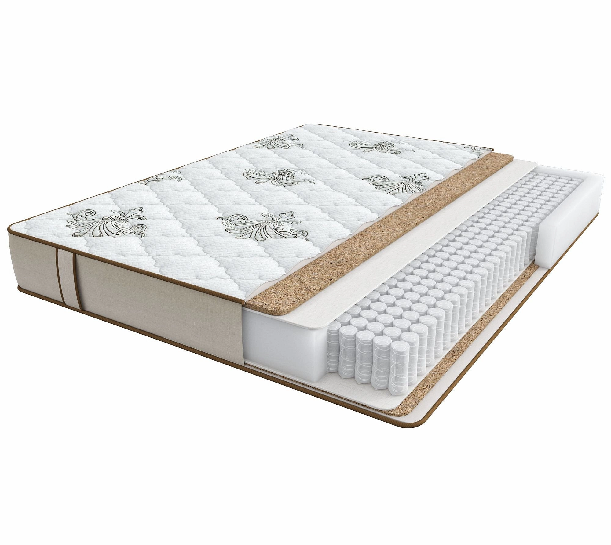 Двухсторонний матрас с изоляционным слоем из льняного полотна, обладающего достаточной упругостью и гибкостью, чтобы обеспечить ортопедическую поддержку.Используется двойной слой кокосового полотна- натуральный растительный материал, изготавливаемый из спрессованных волокон кокосового ореха, пропитанных специальным составом на основе натурального латекса. Сердцем матраса является инновационная система поддержки Addaptive System. Обеспечивает реакцию пружины даже на самые минимальные движения вашего тела в любом направлении, и не реагирует там, где давление на матрас не оказывается.Чехол выполнен из объемного Бельгийского трикотажа, стеганного на синтепоне и высокоэластичной пене Ortho Foam Massage («с эффектом микромассажа»).