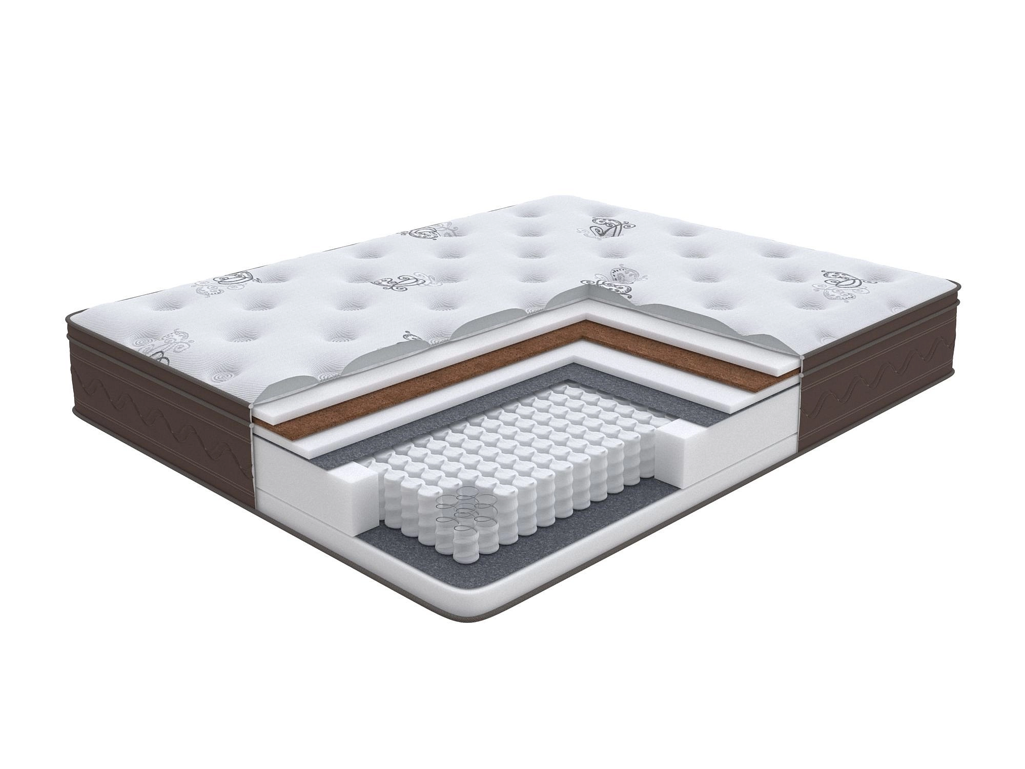 Матрас премиум-класса с многоуровневой системой поддержки, в основе которой уникальный пружинный блок, каждая пружина которого работает автономно. Обладает комфортной средней жесткостью, которая обеспечена сочетанием пенного материала и натуральной кокосовой койры. Пышный рельефный чехол делают поверхность невероятно приятной на ощупь и делает спальное место по-особенному комфортным. Матрас изготовлен по особой технологии и не требует переворачивания.