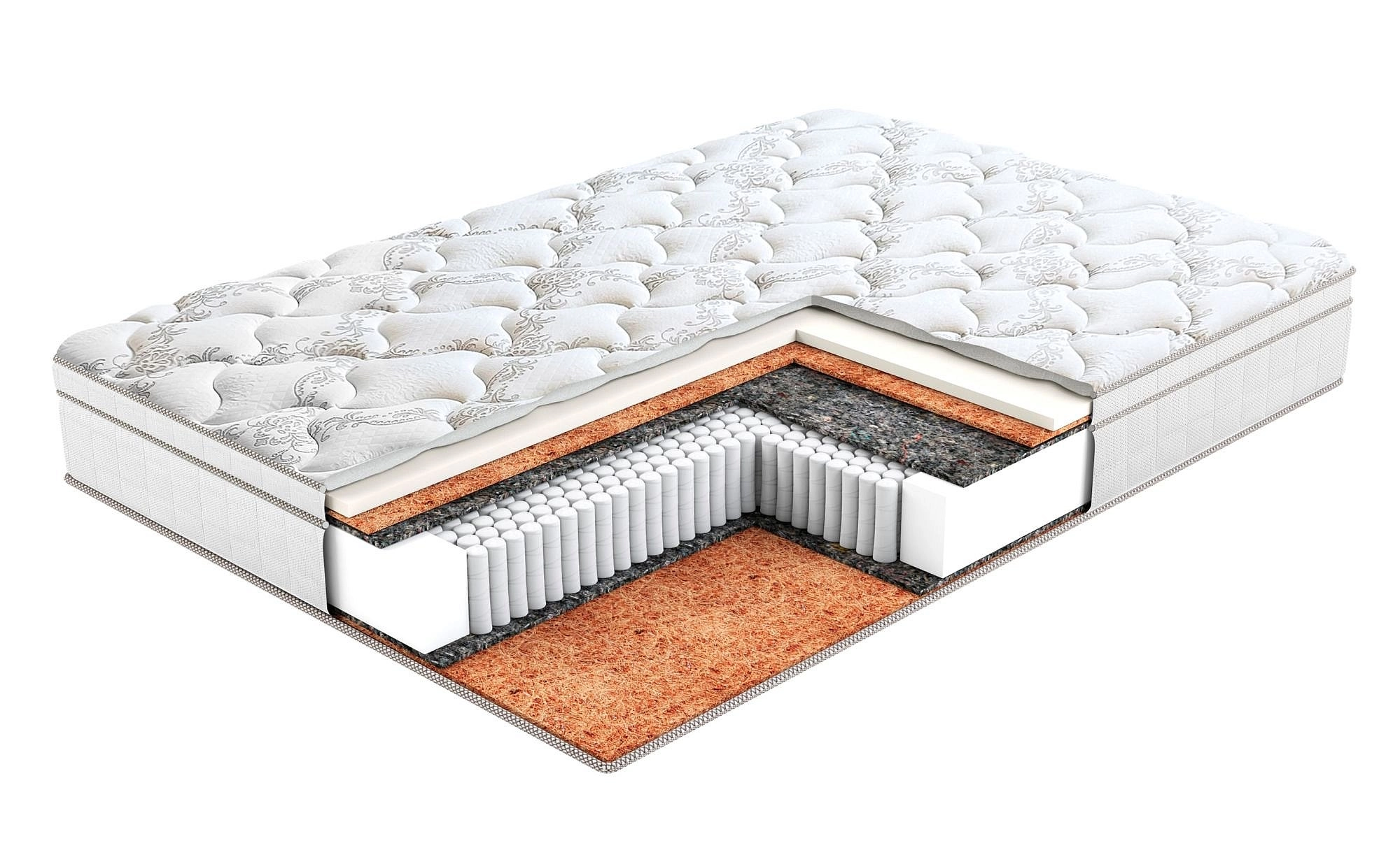 Во флагманской модели Premium Prestige используется надежный, долговечный, независимый анатомический пружинный блок Multi Pocket 1000, который обеспечивает эффективную поддержку позвоночника, благодаря равномерной точечной подстройке пружин под каждую часть тела. Верхний комфортный слой матраса состоит из стрейчевого жаккарда Lux с объемной стежкой. Модель оснащена уникальной системой Pillowtop, в состав которой входит пена с памятью формы Memory. В тандеме с анатомическим пружинным блоком, она эффективно распределяет нагрузку на тело спящего, даря здоровый и крепкий сон. Дополнительная жесткость обеспечивается за счет слоя кокосового полотна. Благодаря чему, анатомические свойства матраса сохраняются даже при высокой нагрузке.