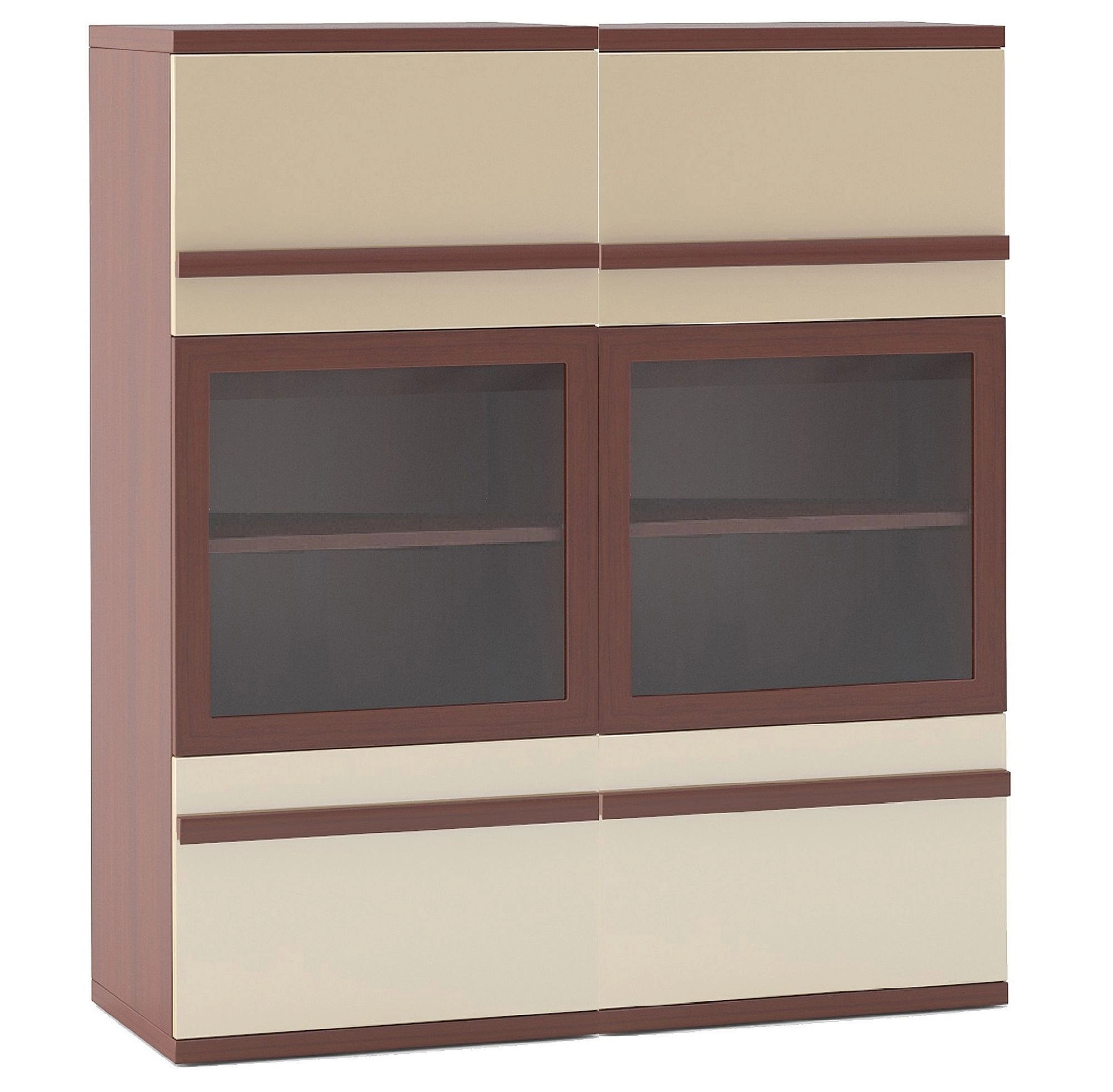 Описание: Композиция состоит из двух однодверных шкафов. Каждый шкаф-витрина с тремя щитовыми полками подходит для хранения красивой праздничной посуды, любимых и памятных вещей, различных редких сувениров, наград. Ящики оснащены направляющими с доводчиками с функцией плавного и бесшумного открывания/закрывания. Бежевые глянцевые фасады создают ощущение легкости и света, визуально увеличивая пространство комнаты. Рамочные стеклянные фасады украшены декоративным профилем из МДФ и для удобства оснащены механизмом PUSH open, который откроет дверцы простым нажатием.