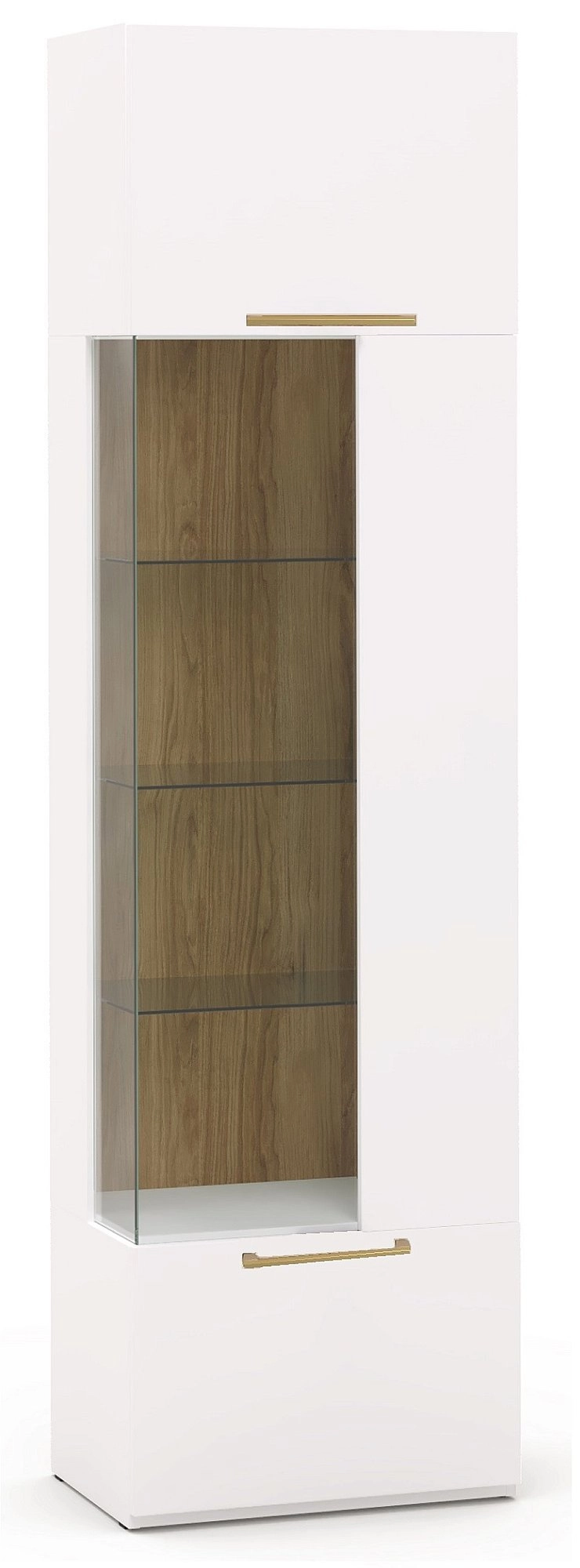 Описание: Шкаф-витрина подходит для хранения красивой праздничной посуды, любимых и памятных вещей, различных редких сувениров, наград, а также для зонирования комнаты и ее визуального увеличения. Шкаф-витрина с тремя стеклянными полками гармонично сочетается с другими изделиями данной коллекции, создавая единую стилистическую композицию, или может использоваться как самостоятельный элемент интерьера. Стеклянный фасад для удобства оснащен механизмом PUSH open, который откроет дверцу простым нажатием. Дополнительная подсветка шкафа придаст интерьеру особый шарм. Ящик оснащен направляющими, а распашной фасад - петлями с доводчиками с функцией плавного и бесшумного открывания/закрывания. Фасады шкафа МДФ в отделке 3D пленка ПВХ (производство Германия). Модная поверхность Perfect Touch с имитацией мягкой матовой лакированной кожи. Теплый, приятный на ощупь материал с улучшенными техническими свойствами.