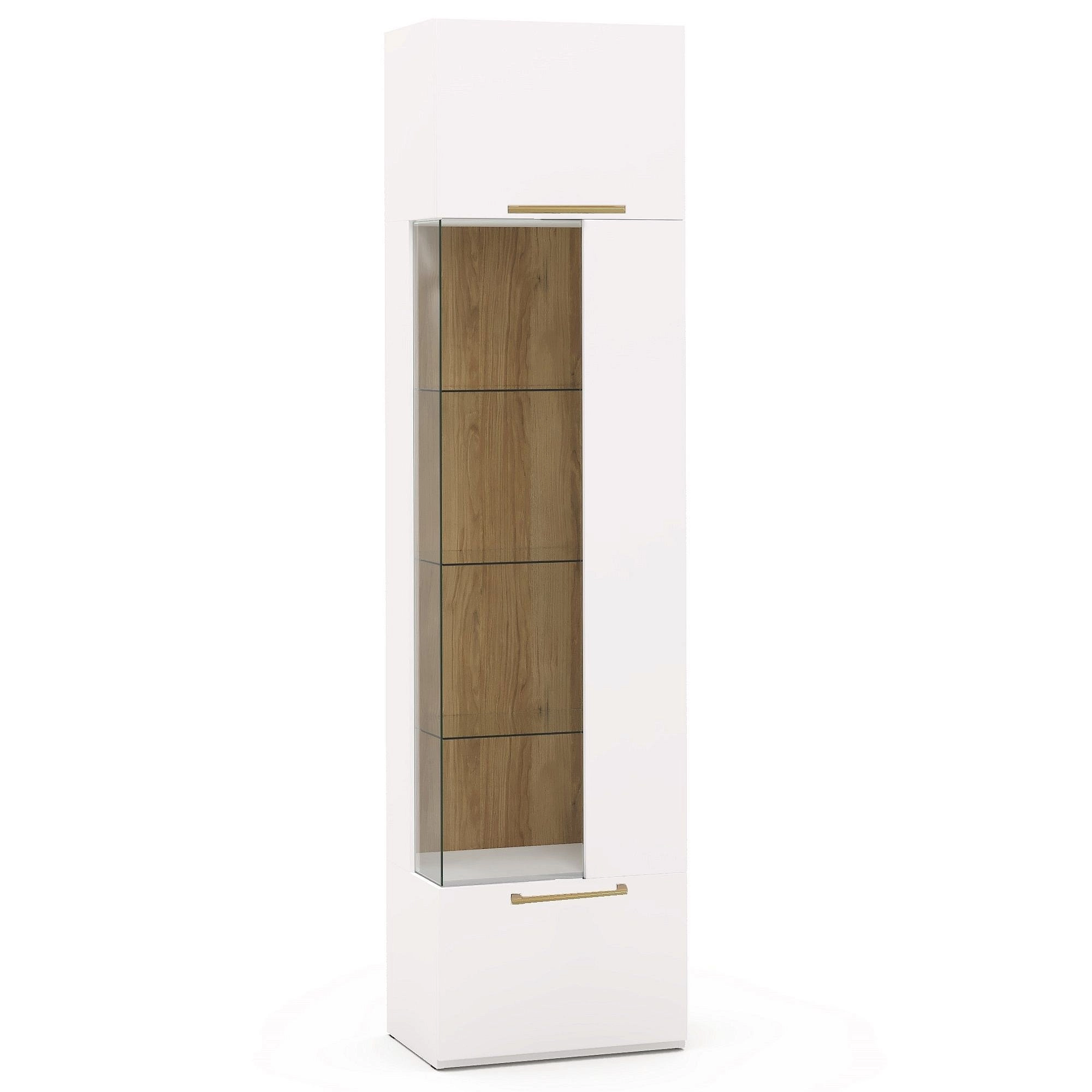Описание: Шкаф-витрина подходит для хранения красивой праздничной посуды, любимых и памятных вещей, различных редких сувениров, наград, а также для зонирования комнаты и ее визуального увеличения. Шкаф-витрина с тремя стеклянными полками гармонично сочетается с другими изделиями данной коллекции, создавая единую стилистическую композицию, или может использоваться как самостоятельный элемент интерьера. Стеклянный фасад для удобства оснащен механизмом PUSH open, который откроет дверцу простым нажатием. Дополнительная подсветка шкафа придаст интерьеру особый шарм. Ящик оснащен направляющими, а распашной фасад - петлями с доводчиками с функцией плавного и бесшумного открывания/закрывания. Фасады шкафа МДФ в отделке 3D пленка ПВХ (производство Германия). Модная поверхность Perfect Touch с имитацией мягкой матовой лакированной кожи. Теплый, приятный на ощупь материал с улучшенными техническими свойствами.