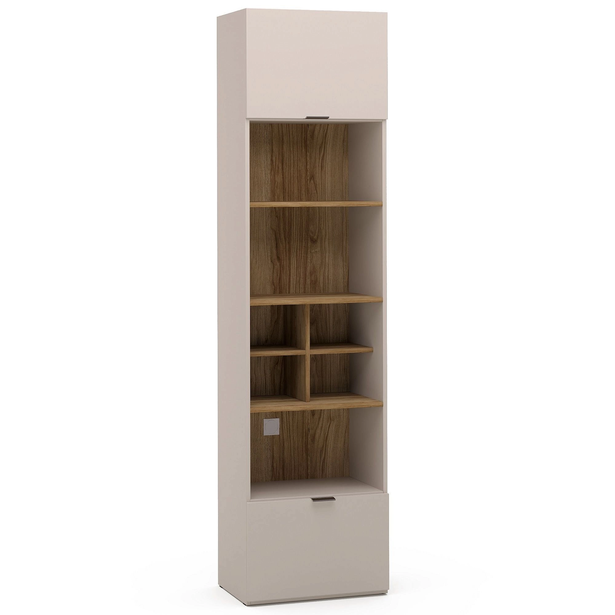 Описание: Стеллаж с двумя откидными фасадами подойдёт для любой комнаты. Стеллаж гармонично сочетается с другими изделиями данной коллекции, создавая единую стилистическую композицию, или может использоваться как самостоятельный элемент интерьера. Открытые полки стеллажа для быстрого доступа к самому необходимому, например, книгам и канцелярии, а также для декора. Два отсека с откидными фасадами для хранения личных вещей. На задней стенке стеллажа предусмотрен кабель-канал с заглушкой. Фасады стеллажа в отделке 3D пленка ПВХ (производство Италия). Суперматовый материал выглядит роскошно, а на ощупь приятный и тёплый, как шёлк. Поверхность надёжно защищена от царапин, благодаря особой обработке. При возникновении микродефекта его можно легко устранить с помощью термического сглаживания. Технология ANTI-FINGERPRINT гарантирует отсутствие отпечатков пальцев на фасадах.