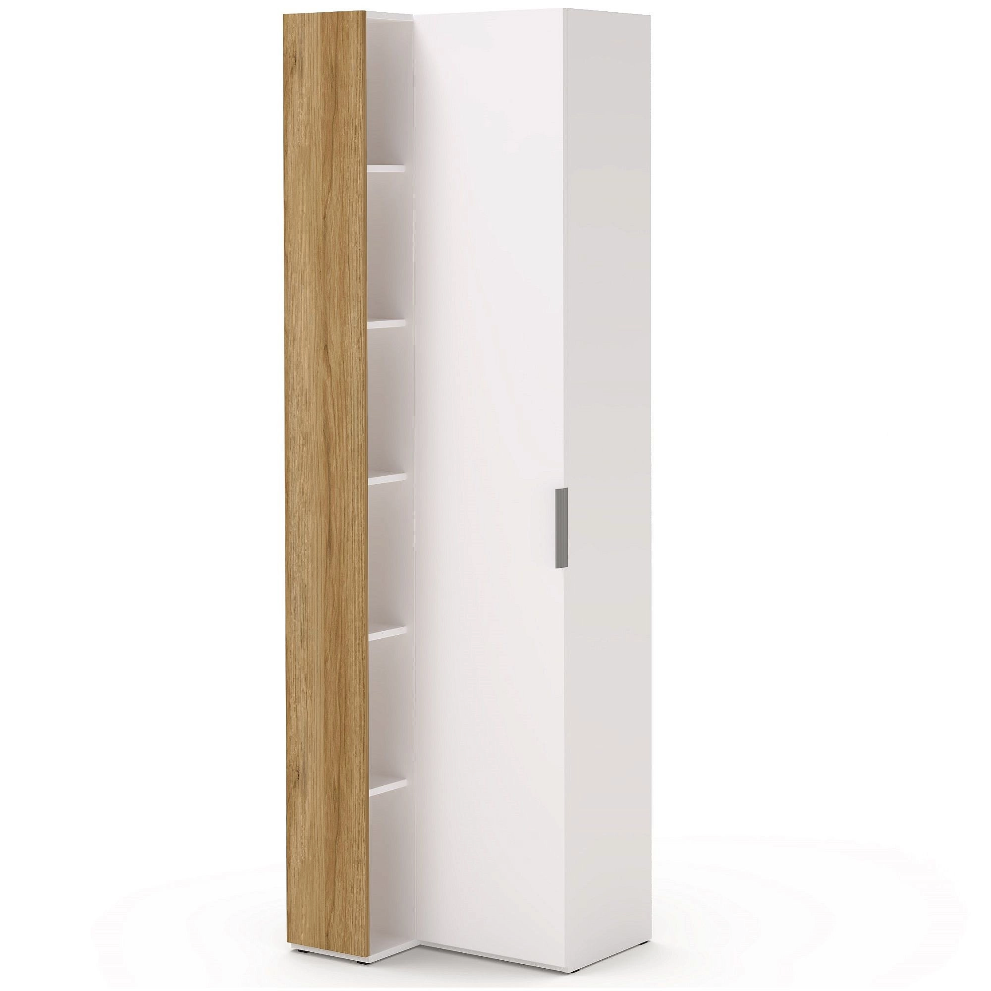 Описание: Переходный шкаф позволяет соединить модули коллекции с разной глубиной. Создавая такую композицию, вы сделаете интерьер помещения оригинальным и функциональным. Внутреннее пространство шкафа с пятью полками для хранения любых вещей. А в открытом стеллаже в текстуре натурального дерева идеально будут смотреться фоторамки, декоративные цветы, книги и другие приятные мелочи. Дополнительная подсветка стеллажа придаст интерьеру особый шарм. Фасад шкафа МДФ в отделке 3D пленка ПВХ (производство Германия). Модная поверхность Perfect Touch с имитацией мягкой матовой лакированной кожи. Теплый, приятный на ощупь материал с улучшенными техническими свойствами. Дверь шкафа оснащена петлями с доводчиками с функцией плавного и бесшумного открывания/закрывания.