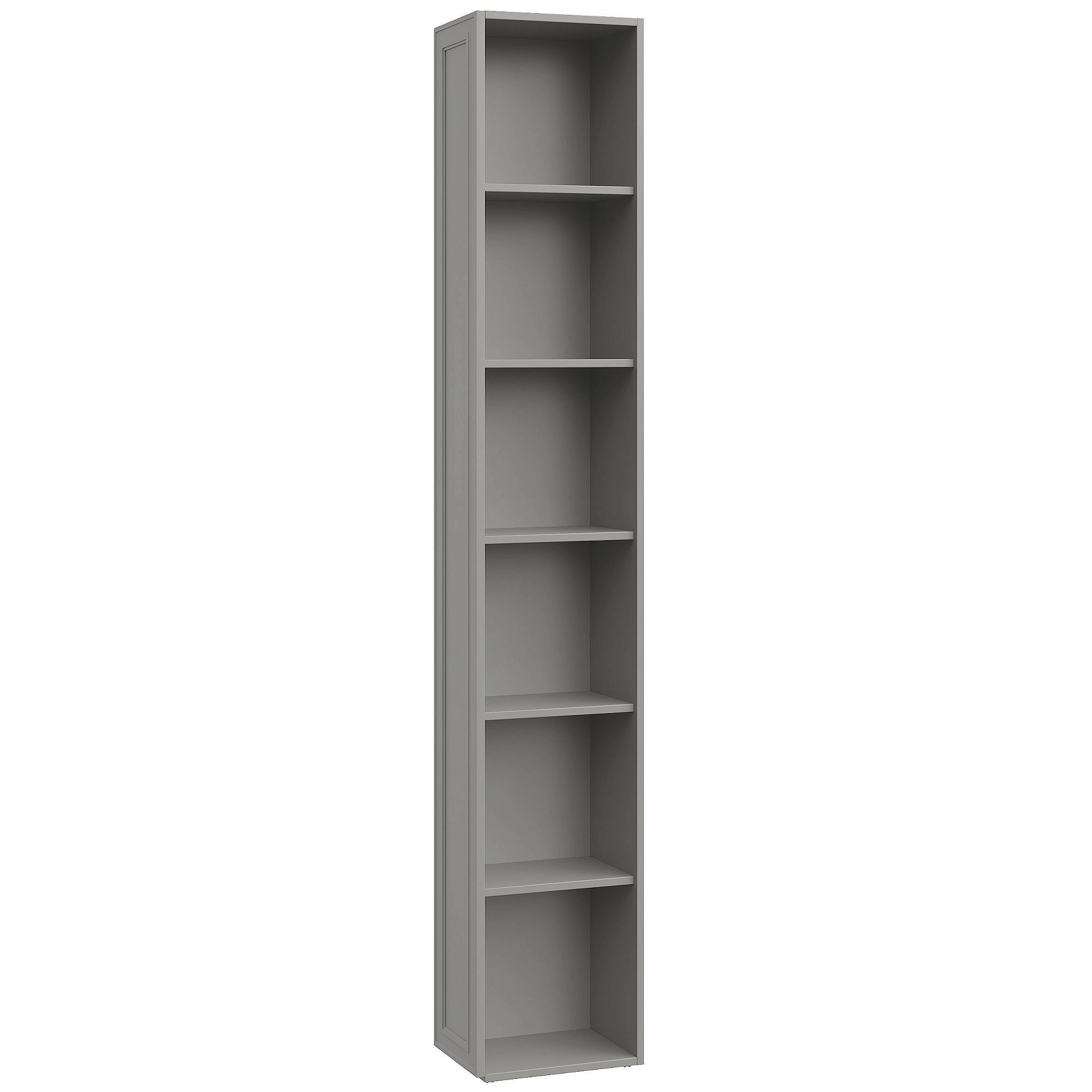 Стеллаж прямой Montreal торцевой разработан для завершения шкафной группы коллекции и увеличения пространства хранения. Стеллаж приставляется справа к шкафу глубиной 404мм. Серая отделка изделия станет самодостаточным цветом для формирования дизайна пространства и незаменимой базой для смелых экспериментов с яркими деталями интерьера. Стеллаж дополнительно комплектуется карнизом.