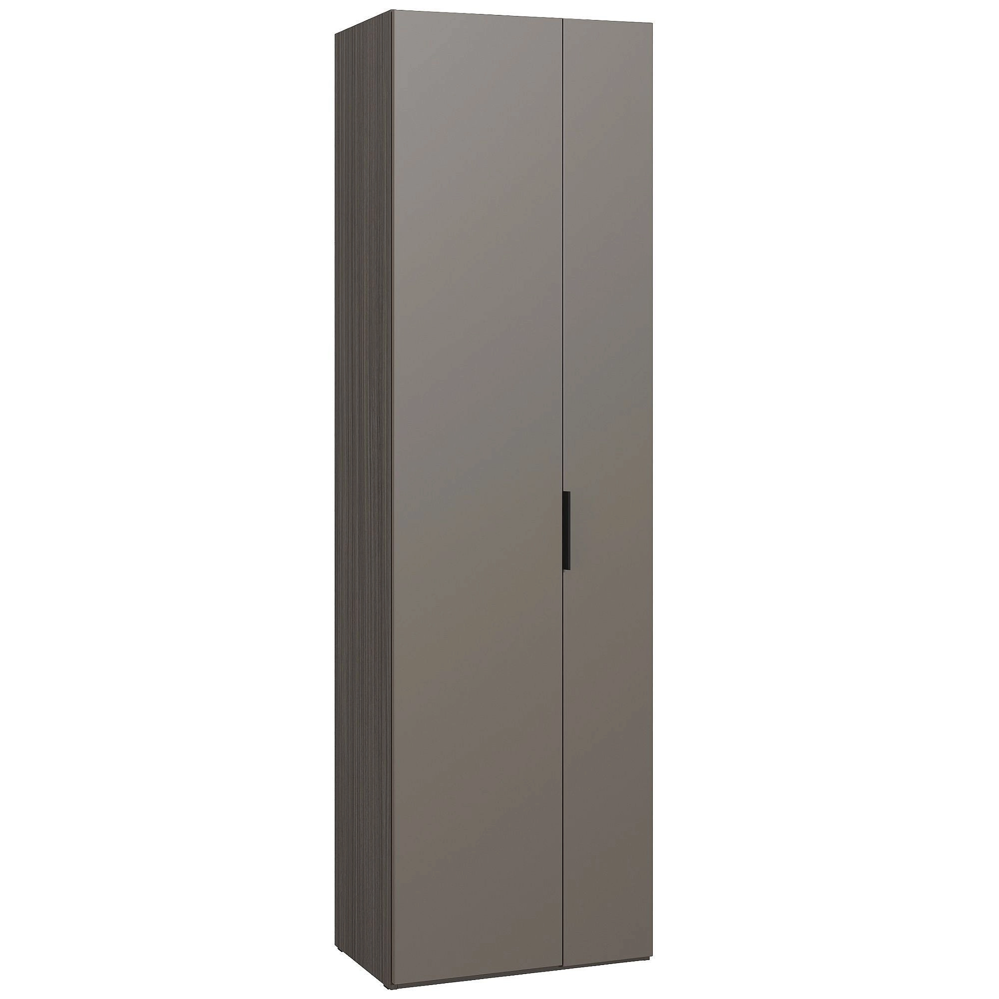 Стенка задняя – ДВПО в текстуре «Глиняный серый». Наполнение – 2 щитовые полки и выдвижная штанга. Кромка на видимых торцах – ПВХ. Петли – с доводчиками. Ручки – 160 мм, цвет черный матовый.