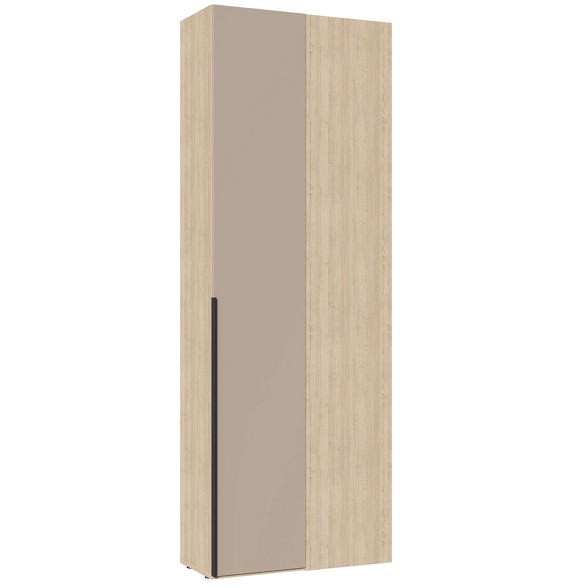 Корпус изделия изготовлен из ЛДСП с текстурой Bowie – светлый древесный декор с выразительным рисунком, имитирующим натуральное дерево. Тонкие полосы и плавные переходы в структуре поверхности создают ощущение глубины и теплоты. Завершает образ однотонный фасад и минималистичная металлическая ручка черного цвета.