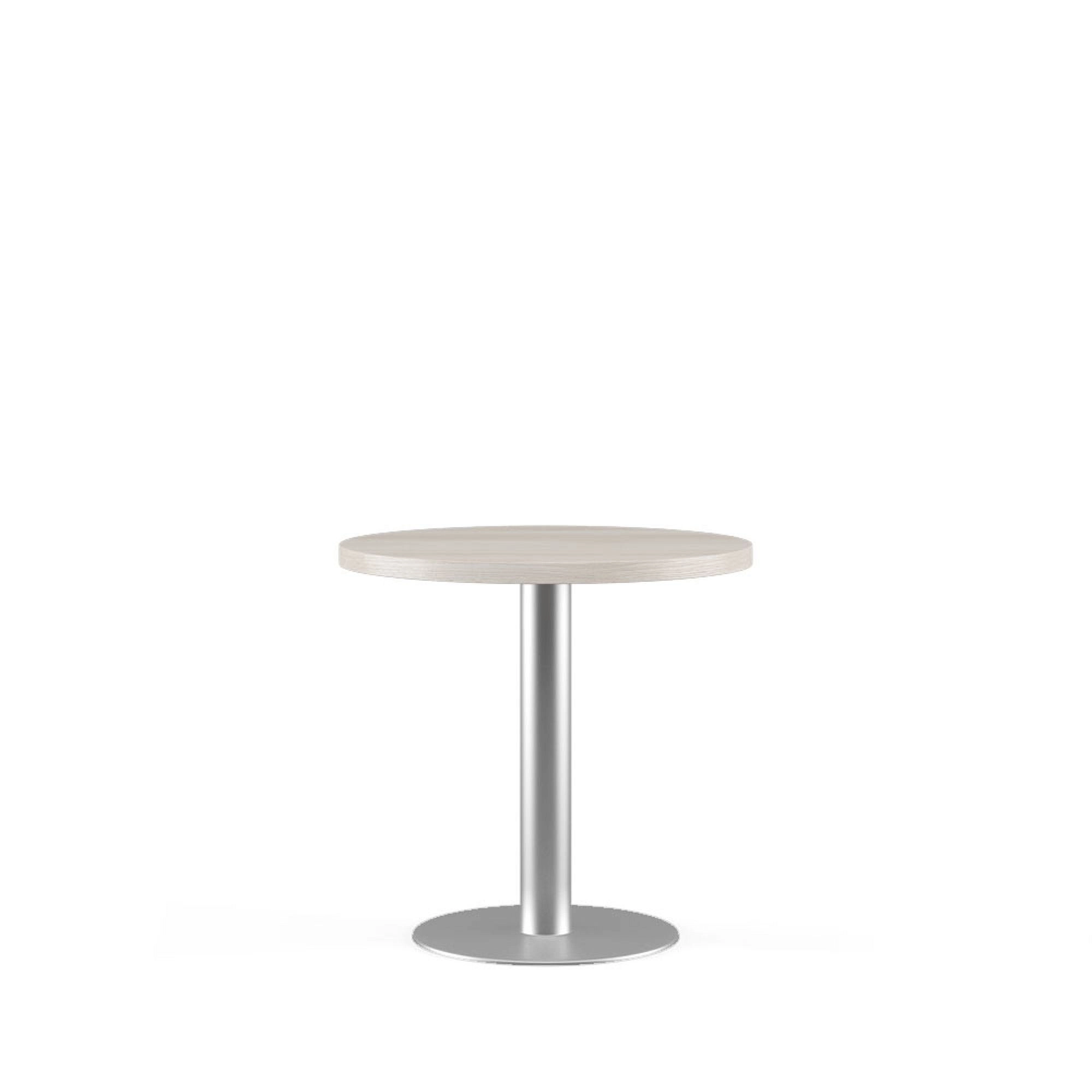 Габаритные размеры (мм) 800х800х760. Столешница двухслойная из ЛДСП 18мм, суммарной толщиной 36мм, торец облицован кромкой ПВХ 2мм. Для крепления к подстолью врезаны металлические муфты. Опора металлическая на круглом основании D450мм, окраска порошковая. Сборка осуществляется с использованием винтов М6.
