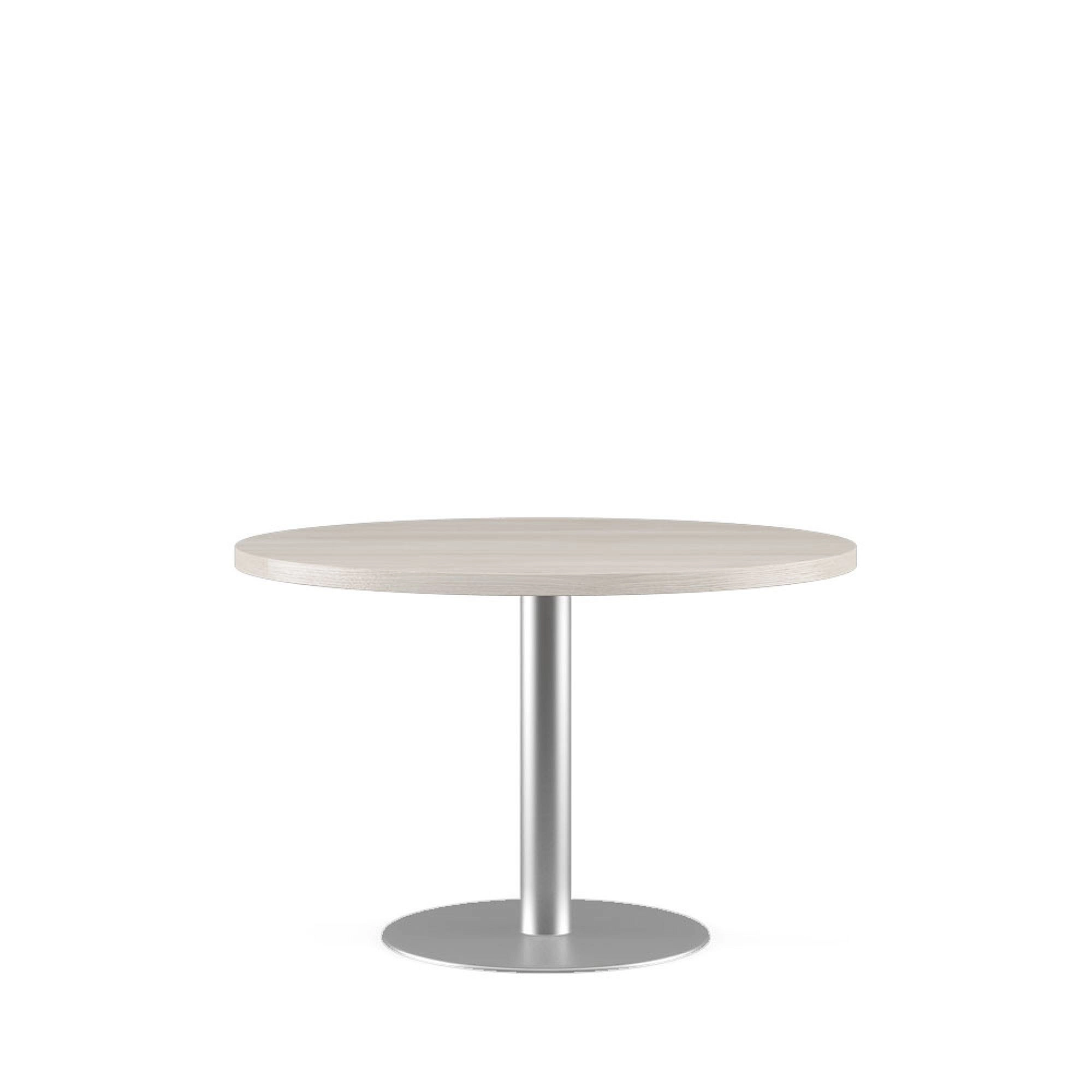 Габаритные размеры (мм) 1200х1200х760. Столешница двухслойная из ЛДСП 18мм, суммарной толщиной 36мм, торец облицован кромкой ПВХ 2мм. Для крепления к подстолью врезаны металлические муфты. Опора металлическая на круглом основании D700мм, окраска порошковая. Сборка осуществляется с использованием винтов М6.