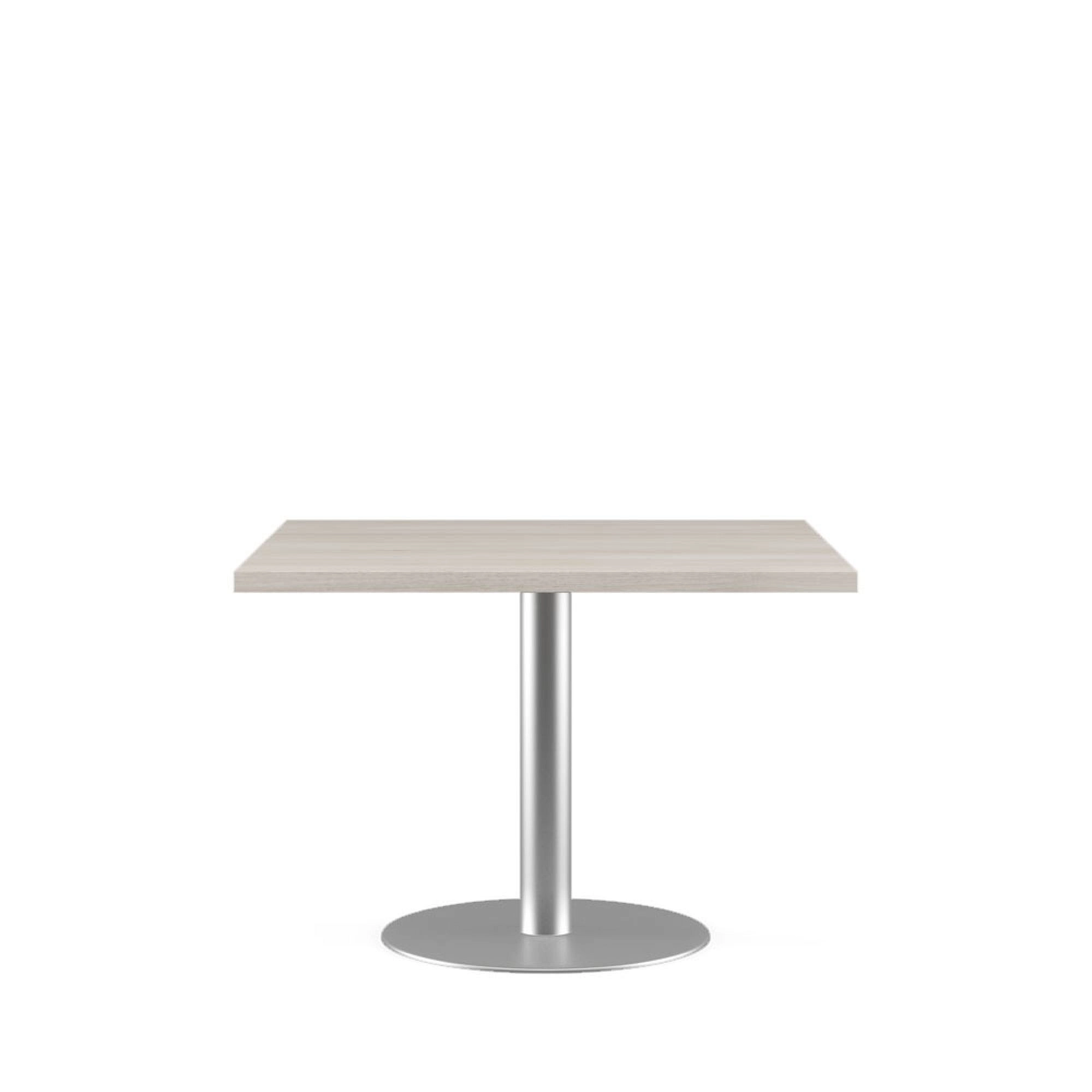 Габаритные размеры (мм) 1100х1100х760. Столешница двухслойная из ЛДСП 18мм, суммарной толщиной 36мм, торцы облицованы кромкой ПВХ 2мм. Для крепления к подстолью врезаны металлические муфты. Опора металлическая на круглом основании D700мм, окраска порошковая. Сборка осуществляется с использованием винтов М6.