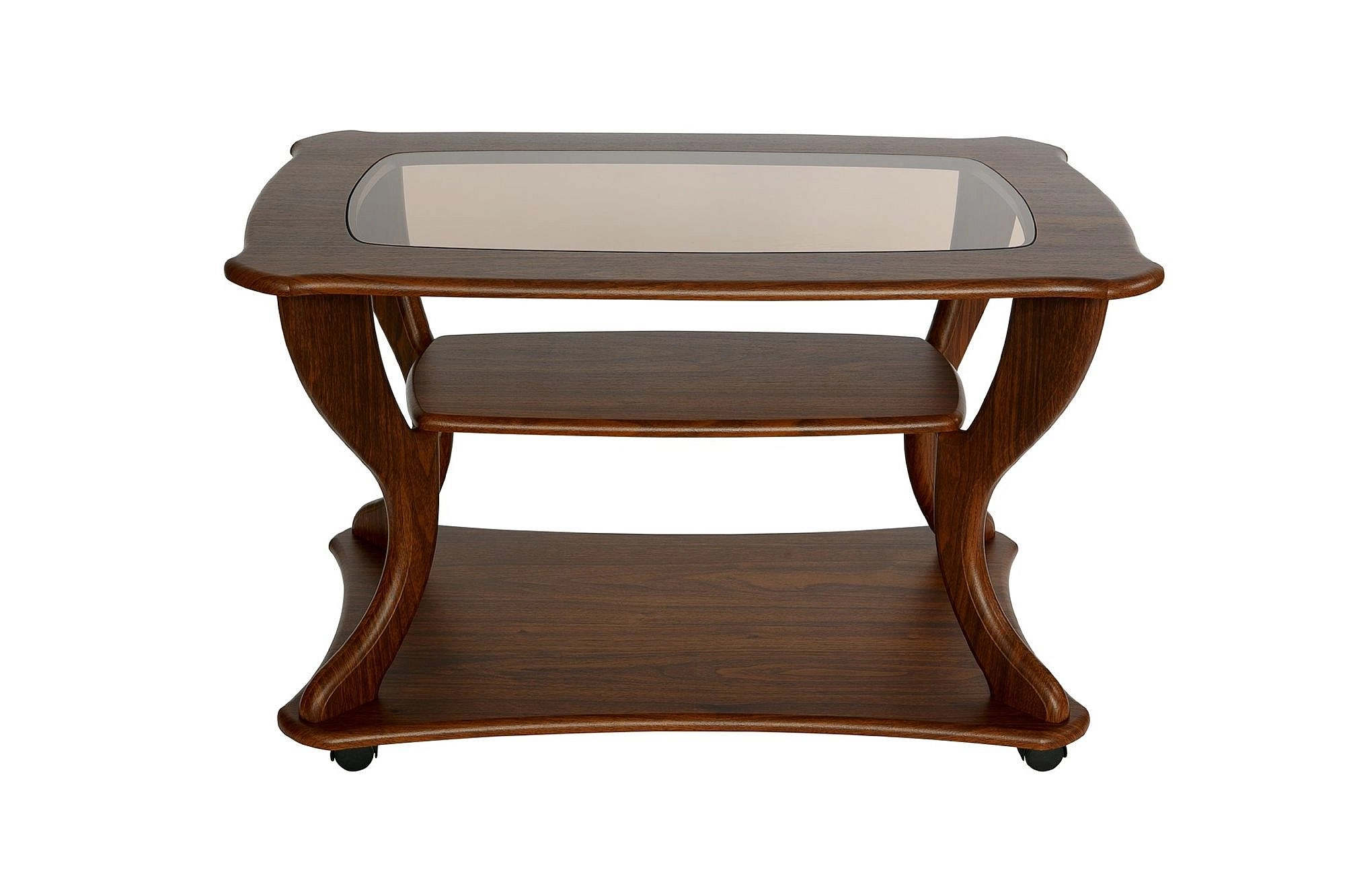 Журнальные столы со стеклянной столешницей несомненно будут украшением любой гостиной. Данная модель журнального стола - это прекрасный вариант для любого интерьера. Особую грацию столику придает столешница со стеклянной вставкой из матового или тонированного стекла (толщина 4 мм) в зависимости от цвета изделия. Матовое стекло используется при производстве столов в цвете дуб, венге, слива, тонированное-бук, ольха, вишня, орех. Стол дополнен полкой длиной 600 мм, шириной 300 мм и основанием на колесной опоре, что позволит легко перемещать его по комнате. Размер столешницы: длина 900 мм, ширина 600 мм, высота стола 560 мм.
