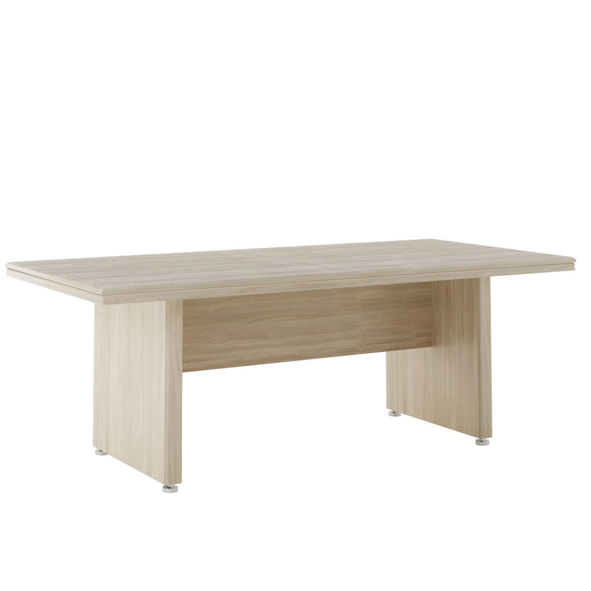Стол для переговоров состоит из столешницы, двух опор и стенки вертикальной. Столешница двухслойная из МДФ толщиной 24 мм, суммарной толщиной 48 мм, декорирована методом глубокого фрезерования, с последующей отделкой специальными лакокрасочными материалами и финишной отделкой лаком. Боковины состоят из ЛДСП толщиной 16 мм с двух сторон, в центре проставки, для придания толщины боковин, по краям закрытые пилястрами из МДФ толщиной 16 мм, суммарной толщиной 50 мм, декорирована методом глубокого фрезерования, с последующей отделкой специальными лакокрасочными материалами и финишной отделкой лаком. Стенка вертикальная стола состоит из ЛДСП толщиной 16 мм. Видимые торцы деталей ЛДСП облицованы кромкой ПВХ 0,4 мм. Сборка осуществляется с использованием эксцентриковых стяжек, стяжек конфирмат и шкантов.