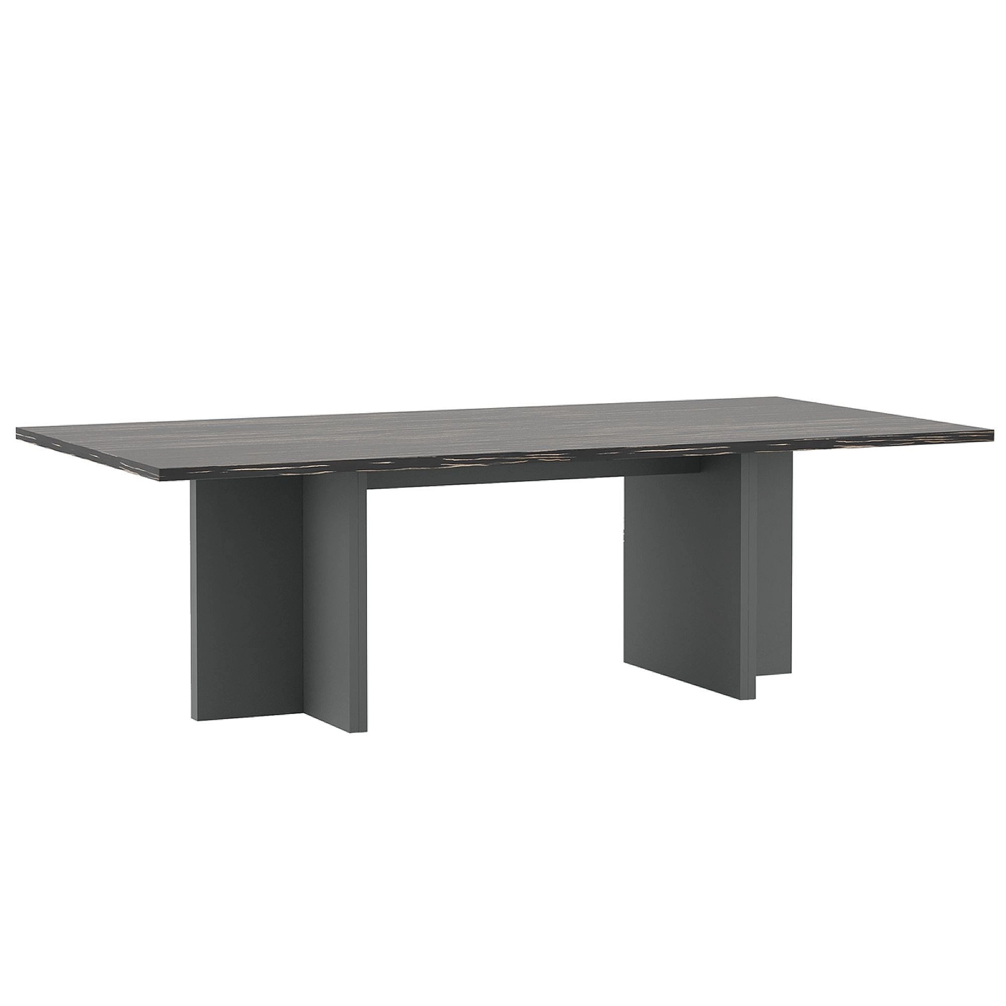 Габаритные размеры (мм) 2400х1200х750. Стол для переговоров состоит из столешницы, двух Т-образных опор и двух царг. Столешница двухслойная из МДФ Шпон 16мм и ЛДСП 16мм, суммарной толщиной 33мм. Опоры двухслойные из ЛДСП 16мм, суммарной толщиной 32мм. Царги из ЛДСП 16мм. Столешница облицована кромкой шпона 1мм, торцы опор и царг облицованы кромкой ПВХ 1мм. Столешница покрыта специальными лакокрасочными материалами. Сборка осуществляется с использованием эксцентриковых стяжек. Опоры регулируются по высоте.
