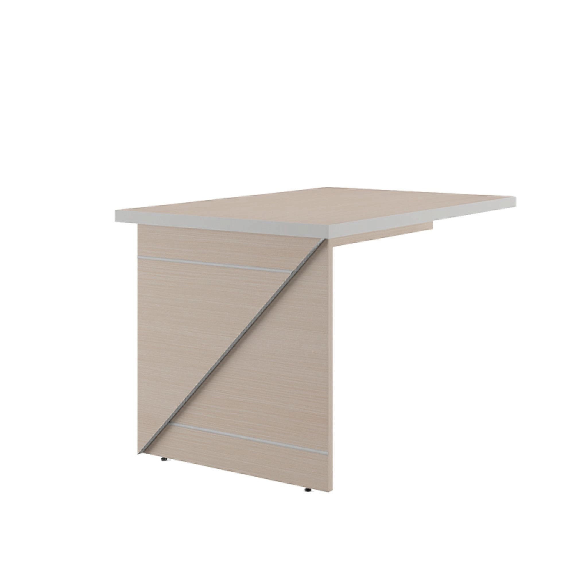 Габаритные размеры (мм) 1200х800х780. Брифинг состоит из столешницы, вертикального щита (опоры) и царги. Столешница двухслойная из ЛДСП 18мм, суммарной толщиной 36мм, торцы облицованы кромкой 2мм – 3D-акрил под металл. Вертикальный щит (опора) представляет собой декоративный элемент двухслойный из ЛДСП 18мм, суммарной толщиной 36мм, стилистически повторяя конфигурацию передней панели стола, видимые торцы облицованы кромкой ПВХ 2 мм. Опора декорирована хромированными горизонтальными молдингами. Царга из ЛДСП 18мм, видимые торцы облицованы кромкой ПВХ 0,4мм. Сборка осуществляется с использованием эксцентриковых стяжек. Опоры регулируются по высоте. Укомплектован двумя стяжными пластинами и винтами для их крепления