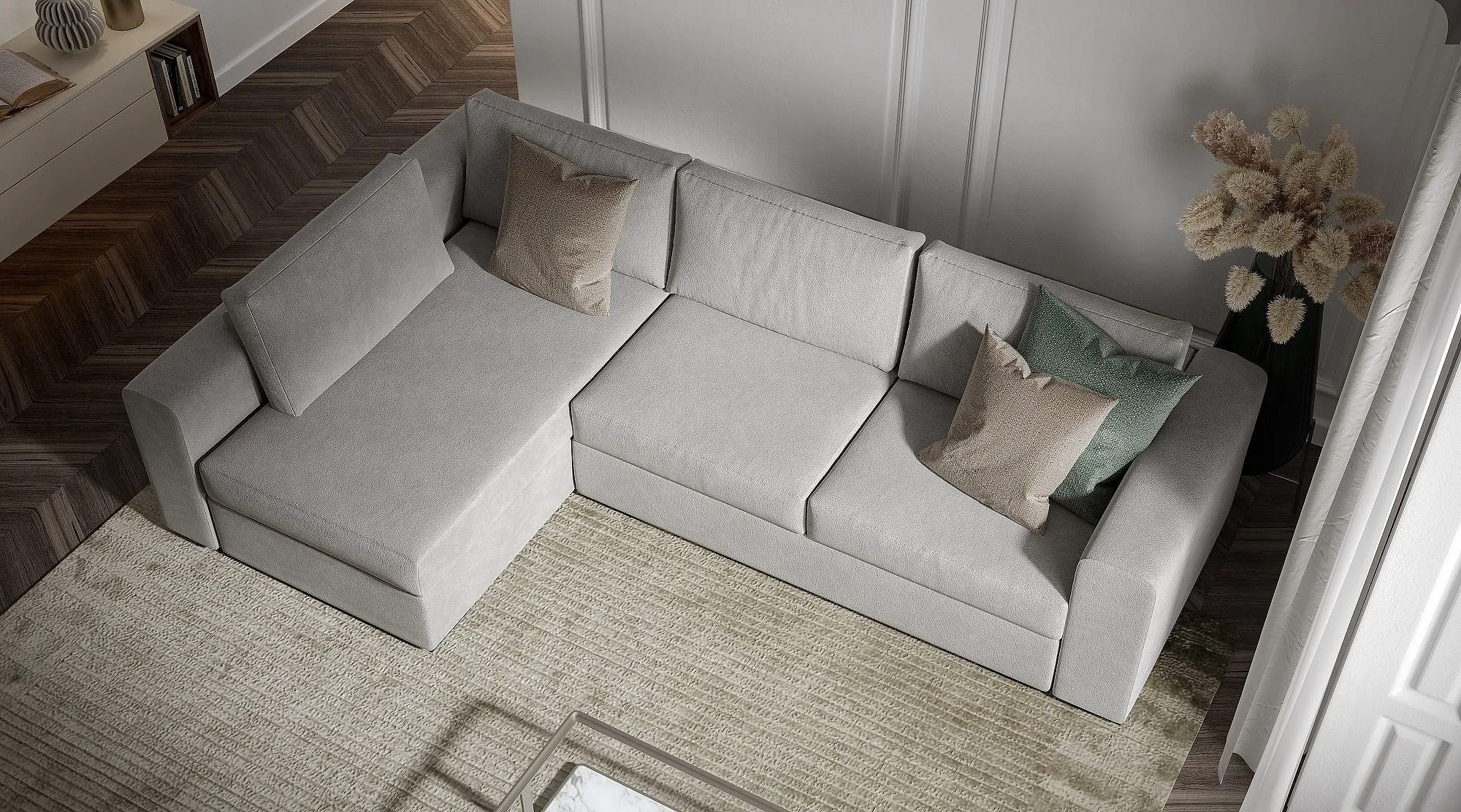 Да, может показаться, что удобнее делать это на том месте, где будет стоять мебель: так ее не придется двигать, царапая пол и прикладывая усилия. Однако иногда в процессе сборки нужно подходить к дивану с разных сторон, и для этого лучше, чтобы он находился в центре или чтобы его как минимум можно было обойти.