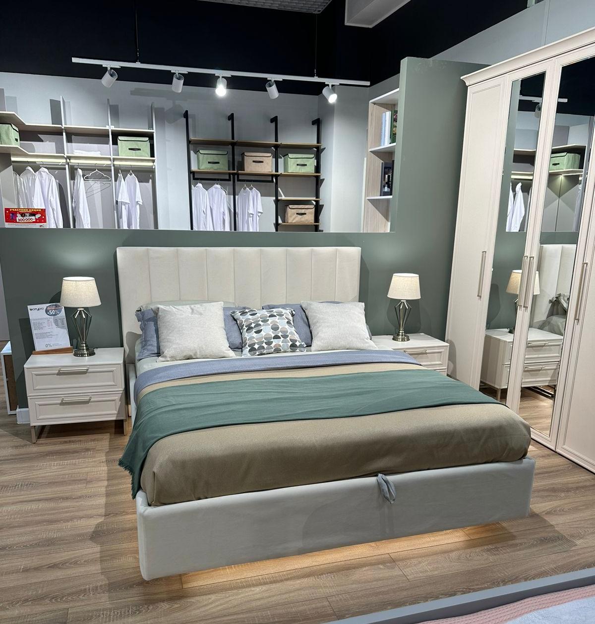 Мягкая двуспальная кровать с подъемным механизмом привлекает внимание стильно оформленной спинкой. Прямые линии изголовья в сочетании с утяжками позволяют не ограничиваться определенным стилем интерьера. Благодаря мягкому изголовью на кровати удобно сидеть, можно читать книгу или смотреть телевизор. Парящий эффект кровати придаст комнате ощущение легкости и воздушности, а мягкий тканевый каркас кровати убережет от травм. Съемный чехол на царгах кровати позволит легко ухаживать за обивкой. Дополнительная подсветка основания кровати придаст интерьеру особый шарм. Ортопедическое основание состоит из металлической рамы с деревянными ламелями, которые надежно поддерживают матрас и обеспечивают комфортный отдых и крепкий сон. Подъемный механизм с газлифтом. Вместительный короб для хранения. Пространство в каркасе кровати разделено на два отделения для удобного хранения одеял, подушек и несезонной одежды. Размер спального места 1600*2000мм.