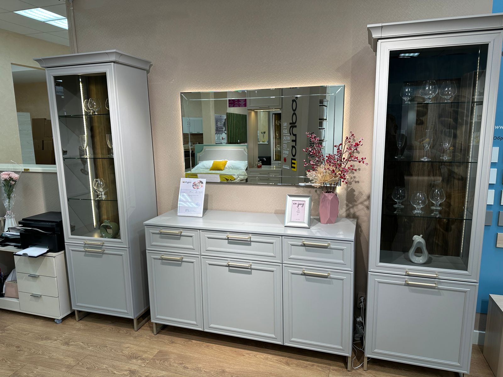 Гостинная монреаль серый, комод и две витрины с подсветкой